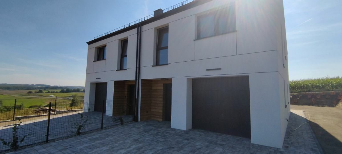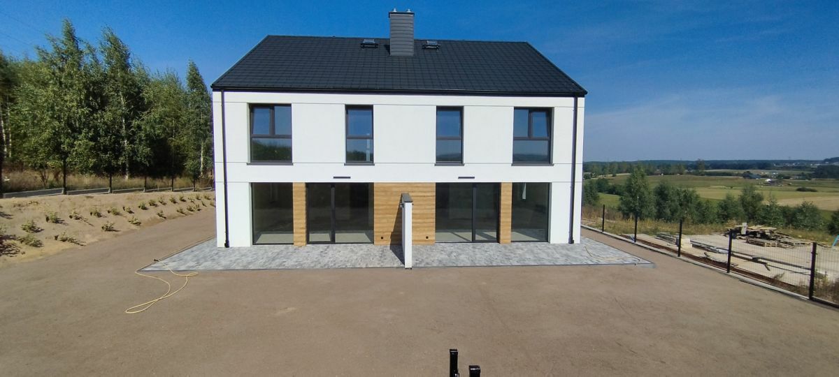 powierzchni całkowitej 123 m2 (każda połówka), garaż oraz poddasze